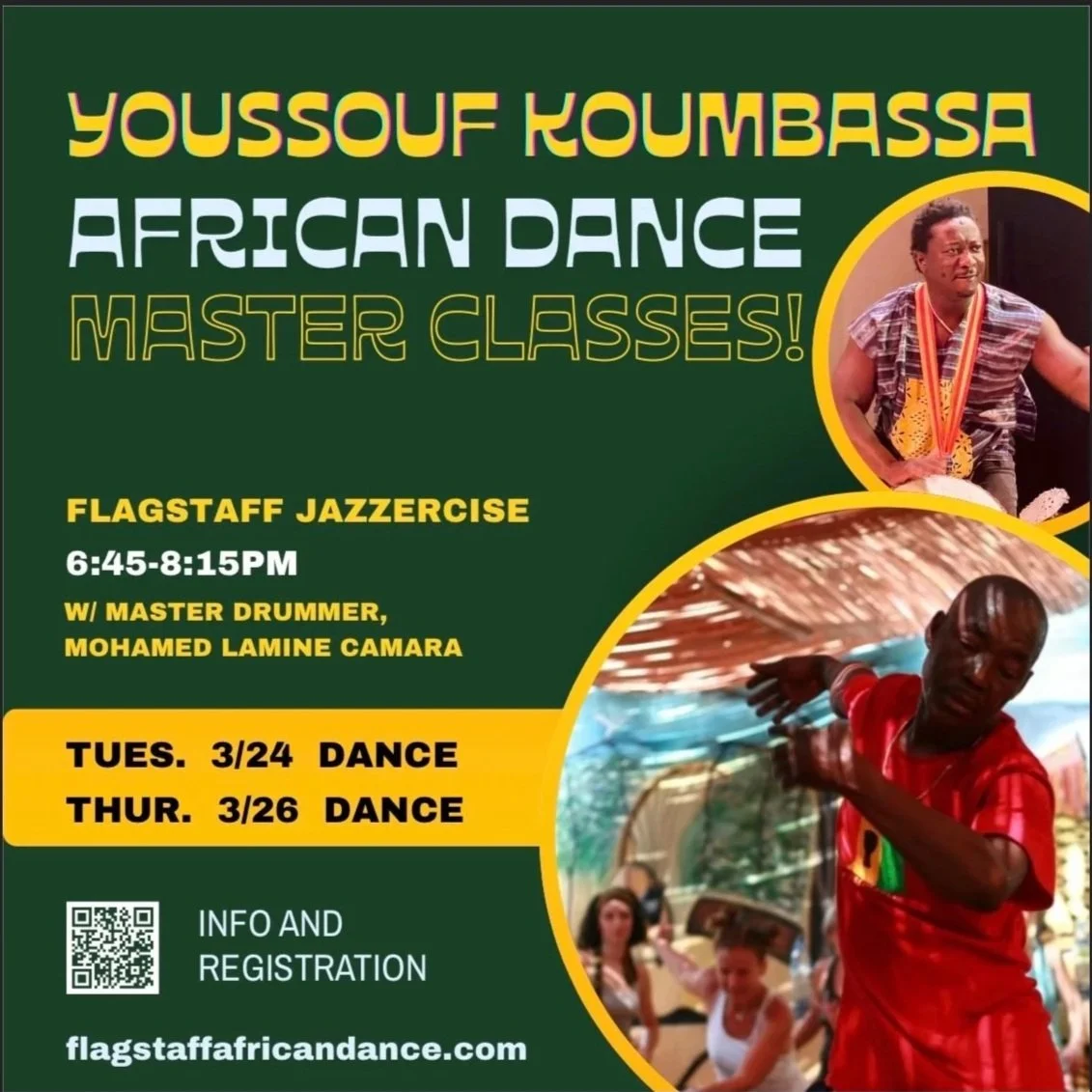 Join world-renowned Guinean dance teacher Youssouf Koumbassa for a beautiful workshop series,